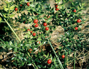 Qu’est ce qui est vert toute l’année, qui a des épines et des petites boules rouges? Le houx, répondrez-vous. Oui… mais il y a aussi le fragon épineux. Cette plante de moyenne montagne fait partie des meilleurs remèdes pour soulager les troubles de la circulation.